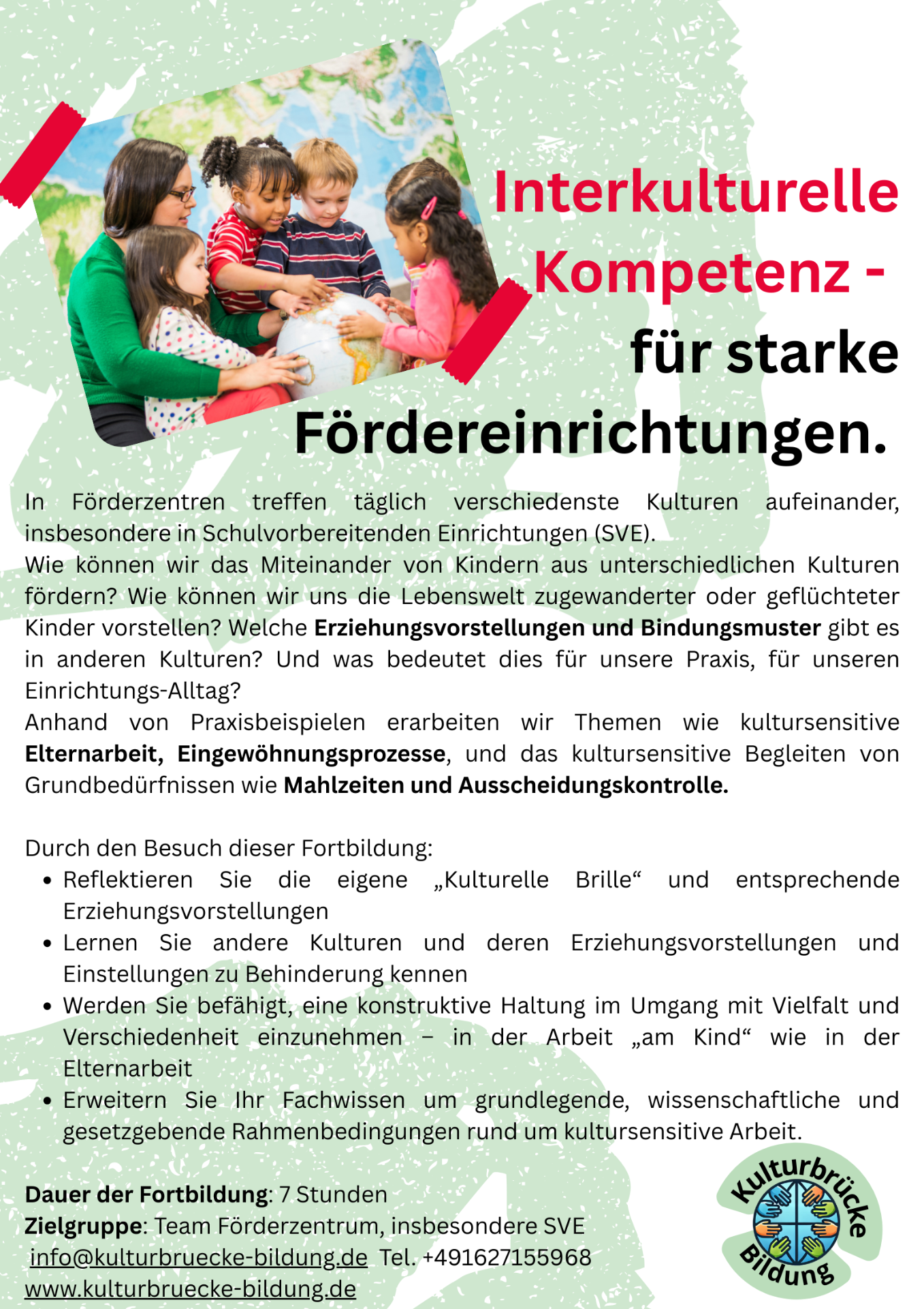 In Kitas und Förderzentren treffen täglich verschiedenste Kulturen aufeinander, insbesondere in Schulvorbereitenden Einrichtungen (SVE).